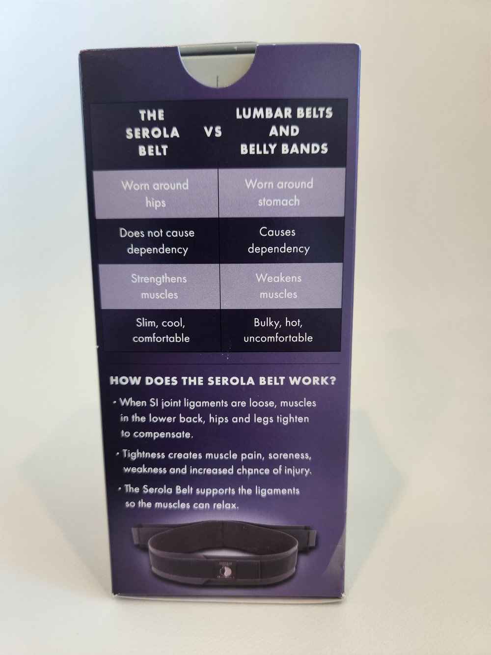 • The Serola Sacroiliac Belt’s patented design that effectively normalizes the function of the sacroiliac joint.