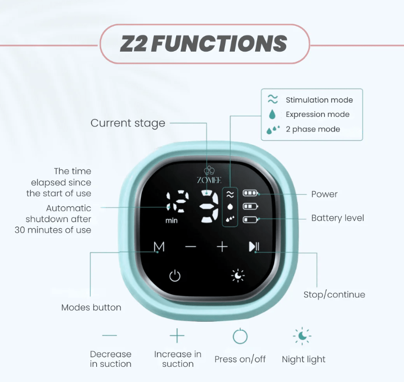 - 3 different pumping styles that you can further tailor for comfort: Massage, Expression, and 2-Phase mode (expression and massage)