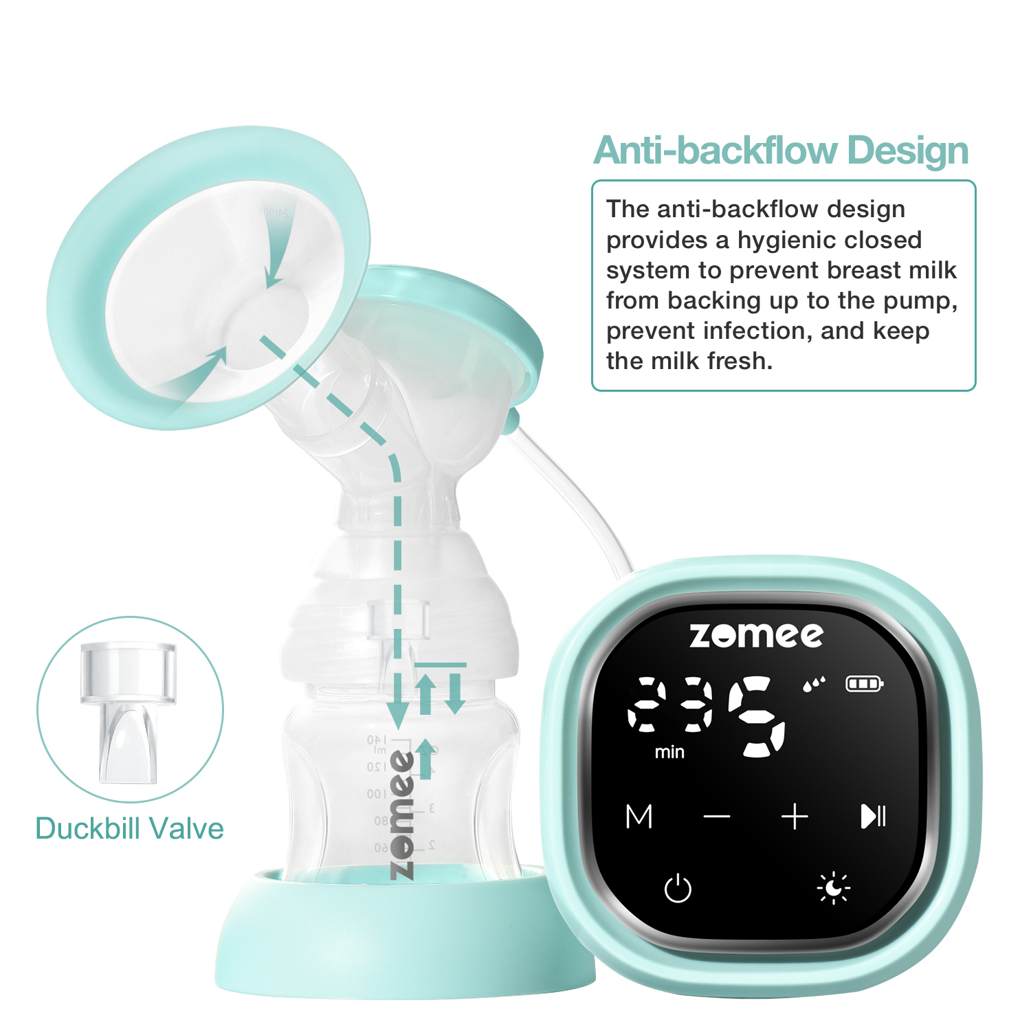 - A hygienic closed system helps prevent milk backup into tubing for easier cleanup